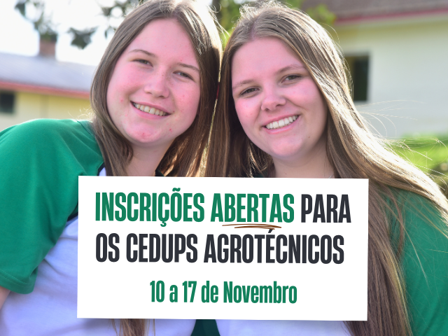 De 10 a 17 de novembro, estudantes interessados em cursar ensino médio integrado ao curso técnico em Agropecuária podem se… Continue a ler »Epagri e SED abrem inscrições gratuitas para ingressar nos Cedups Agrotécnicos