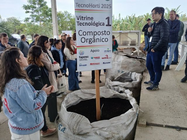 O maior destaque de 2025 no Projeto Hortaliça foi o TecnoHorti, que recebeu 372 visitantes no dia 3 de julho. Autoridades, produtores, estudantes e técnicos puderam conhecer inovações voltadas à produção de hortaliças orgânicas desenvolvidas pelo time de 10 pesquisadores. O evento apresentou seis vitrines com pesquisas sobre adubação, controle de pragas, produção de mudas, novos cultivares, biofertilizantes e sistemas de cultivo, como o cultivo protegido e o Sistema de Plantio Direto de Hortaliças (SPDH). Ao longo do ano, mais 396 pessoas, entre estudantes, produtores e gestores públicos, visitaram a EEI para conhecer as tecnologias inovadoras de produção orgânica de hortaliças.