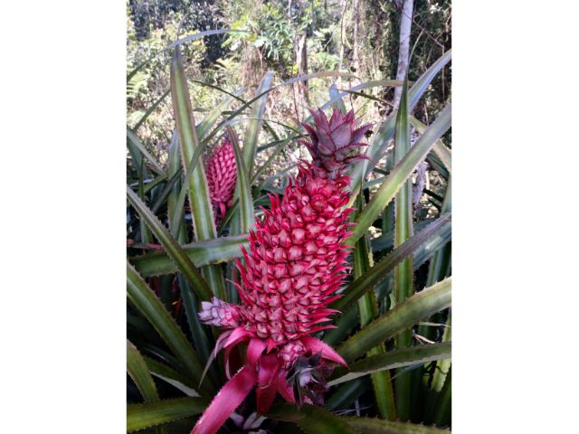 No ano seguinte, a propriedade em Balneário Piçarras ficou pintada com tons de amarelo e laranja, quando os abacaxis atingiram o auge da maturidade, em sua primeira safra. Ao contrário do plantio convencional, onde a colheita é feita toda de uma vez, no sítio agroecológico o fruto só é colhido quando está no auge do dulçor. Outras frutas que podem ser encontradas e degustadas no sítio são: bacupari, mangostão, figo, araçá, pitanga, fisalis, acerola, graviola, guabiroba, cambucá, uvaia, jabuticaba, seriguela, distribuídas na floresta adornada por flores ornamentais.