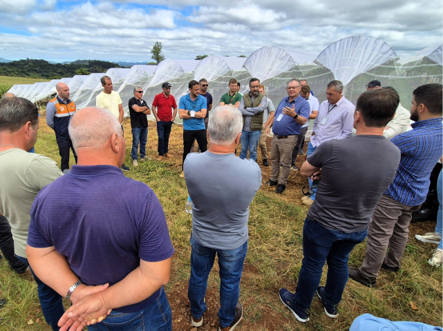 A recente visita de uma comitiva do Rio Grande do Sul a unidades da Epagri consolida ainda mais a instituição como referência no Brasil. No caso específico, autoridades e produtores de uva do Estado vizinho estiveram no Meio-Oeste de Santa Catarina para conferir o sistema antigranizo utilizado na proteção de produções e conheceram as uvas viníferas resistentes a doenças, as chamadas Piwi.