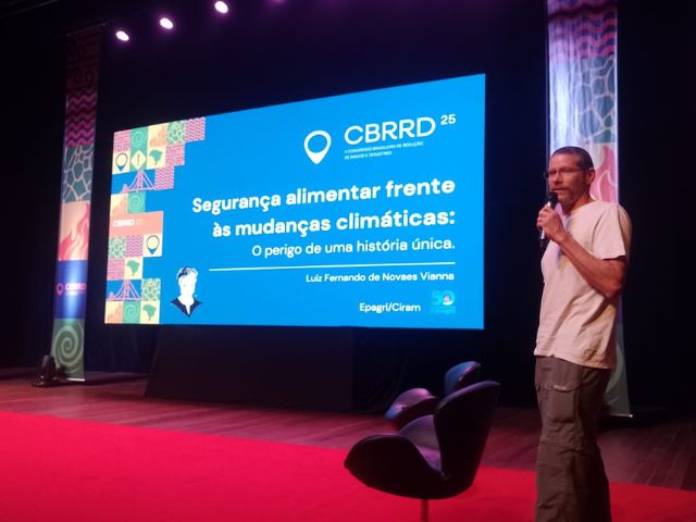 Segurança alimentar, especialmente em tempos de mudanças climáticas, é um tema que aflige populações e governos. O biólogo e pesquisador da Epagri/Ciram Luiz Fernando Vianna foi convidado a refletir sobre esse tema durante o V Congresso Brasileiro de Redução de Risco e Desastres, realizado em outubro em Florianópolis.