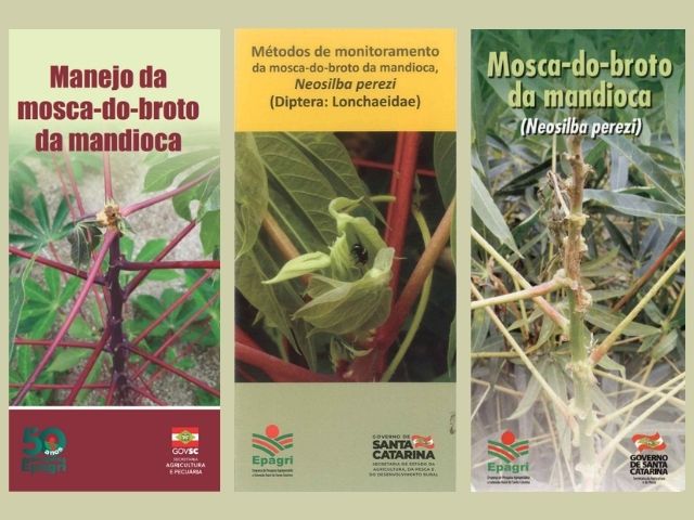 A Epagri acaba de disponibilizar para download gratuito o folder técnico Manejo da mosca-do-broto da mandioca. O material complementa os conteúdos já publicados nos folders Mosca-do-broto da mandioca (Neosilba perezi) e Métodos de monitoramento da mosca-do-broto da mandioca, Neosilba perezi (Diptera: Lonchaeidae), que também podem ser baixados gratuitamente. As três publicações foram produzidas por pesquisadores da Estação Experimental da Epagri em Urussanga (EEUr).